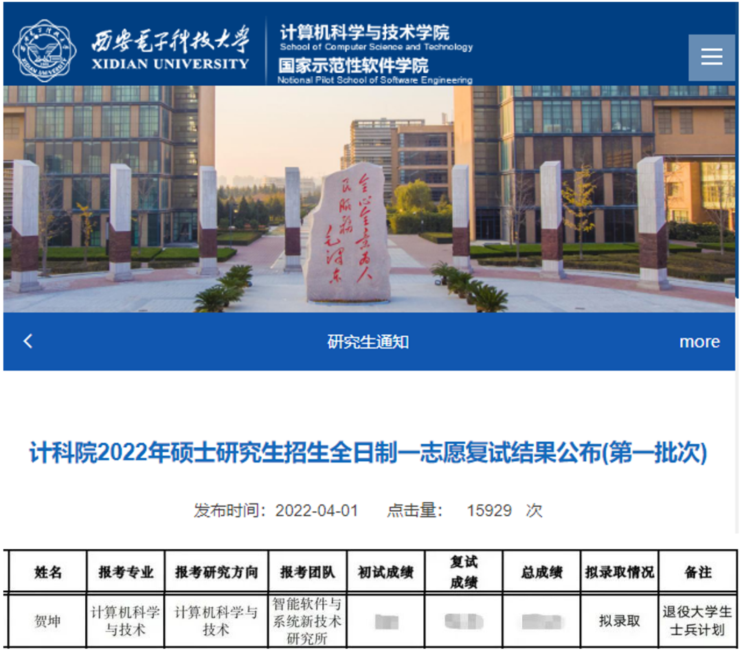 (图文来源体育365官网新闻网)人间最美四月天,在西电退伍老员工士兵群体里传来好消息,贺坤同学通过“硕士研究生招生退役士兵专项计划”被体育365官网拟录取。