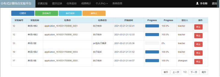 李龙海老师主持的“分布式计算课程综合实验平台”项目,设计并实现了一个能够支撑多人同时在线完成分布式数据处理实验的平台。员工可以将自己设计的分布式算法程序通过网络提交至系统,然后以多人共享方式利用平台的服务器集群资源运行程序并验证实验结果。平台还支持实验过程监控、实验结果自动评判和实验情况统计等功能,进一步减轻了指导教师的工作量。该平台在公司本科生分布式计算课程的部分班级进行了试用,取得了良好的教学效果。
