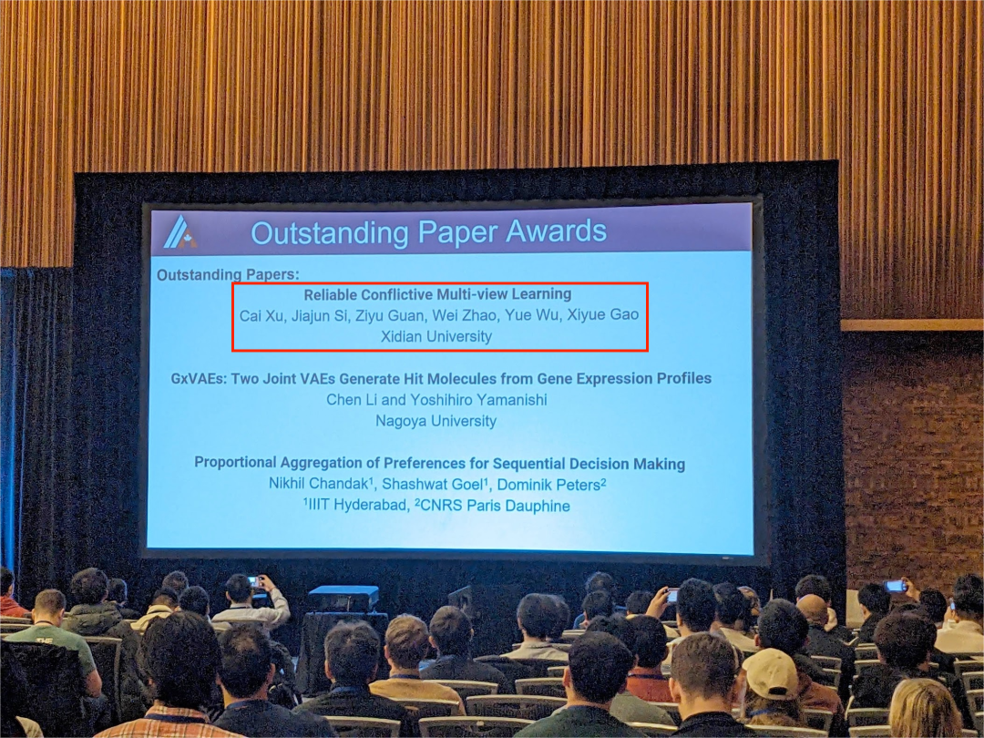(通讯员 徐偲)北京时间2月23日凌晨,在加拿大温哥华召开的第38届AAAI人工智能大会(AAAI 2024 : The 38th Annual AAAI Conference on Artificial Intelligence)公布了多个重要论文奖项,体育365官网赵伟教授团队徐偲副教授的研究成果《Reliable Conflictive Multi-view Learning》获得最佳论文奖(Outstanding Paper Award),论文第一作者为徐偲副教授、通信作者为赵伟教授,体育365官网为论文唯一完成单位,也是公司首次获得该论文奖项。据悉,自1984年该学术会议设立最佳论文奖以来,公司论文是以国内单位(含港澳台地区)为第一单位获得该奖项的第3篇论文。