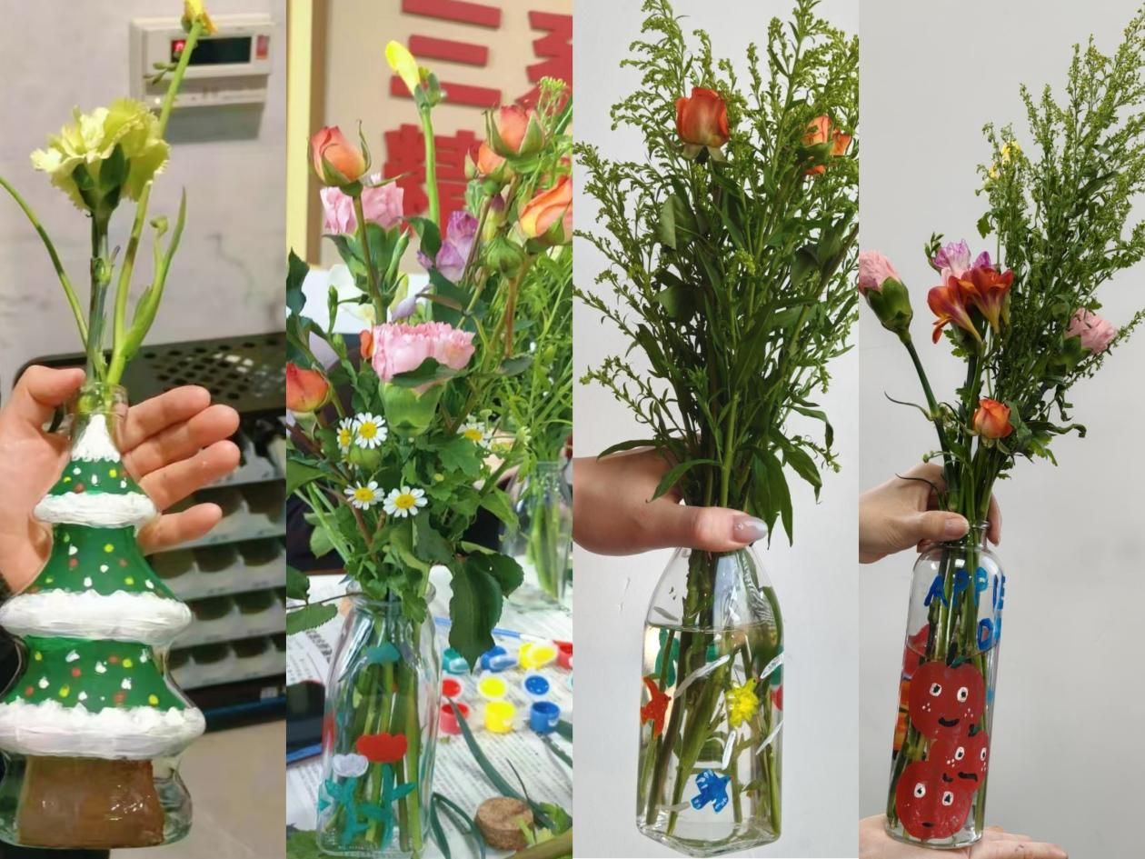 参与活动的2023级硕士研究生田甜同学说到:“能在这样有趣的活动中放松心情,同时还能发挥创意,真的很开心。涂鸦和插花结合在一起,既有艺术感,又很治愈。”2024级硕士研究生赵书萱同学感慨道:“看着自己亲手创作的花瓶以及精心设计的花束,特别有成就感。将作品带回宿舍后,没能参加活动的舍友们都羡慕不已,大家纷纷拍照记录,顿时整个房间都充满了春天的气息和欢声笑语。”
