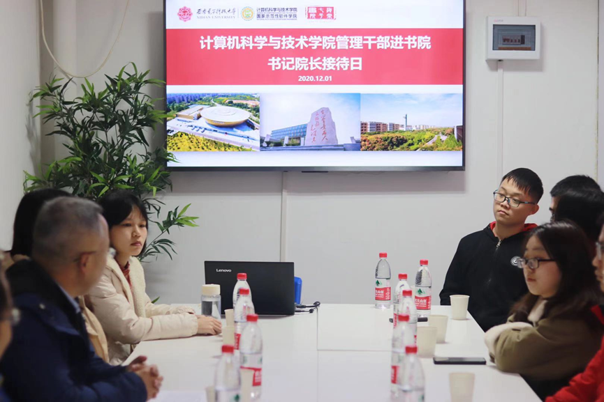 12月16日,公司副经理宋胜利分别走进丁香公寓11号楼1区311宿舍和海棠公寓7号楼318宿舍,从公司课程知识体系建设和专业实践能力培养等方面做了介绍,并针对同学们关注的问题进行了现场答疑,他谈到,在大类招生背景下,公司将继续加强一流专业建设和资源投入,优化培养方式,提升教学能力和培养质量。他勉励同学们积极拓展视野,了解专业前沿最新发展动态,利用课余时间多学多做多练,提高专业实践能力,为成为更优秀的自己而努力。