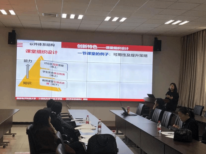 院级预赛由教学创新成果报告(占比25%)和教学设计创新汇报(占比75%)两部分组成。为保证比赛顺利进行,各位评审老师首先对教学创新成果报告进行了审阅。接下来,进入到教学设计创新汇报比拼环节,参赛教师精心准备PPT,结合教学大纲与教学实践,全面进行了整门课程的教学设计创新汇报,充分展示出公司教师的风采。