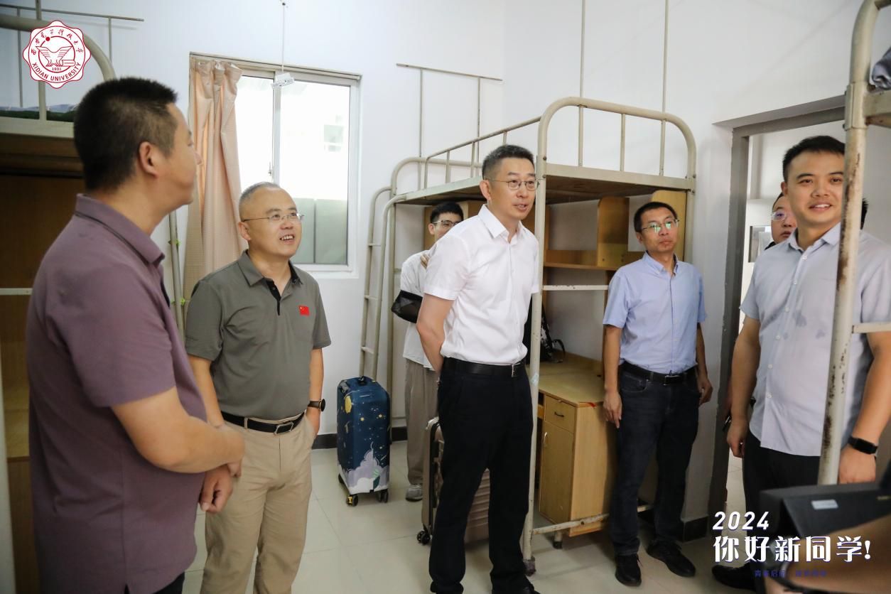 8月31日上午,计算机科学与技术公司党委书记李青山、执行经理崔江涛、副经理万波、副经理李瑞,党委副书记黄成龙及新生辅导员,前往竹园3号楼员工公寓,走访部分员工宿舍,对新生表达关心和慰问。