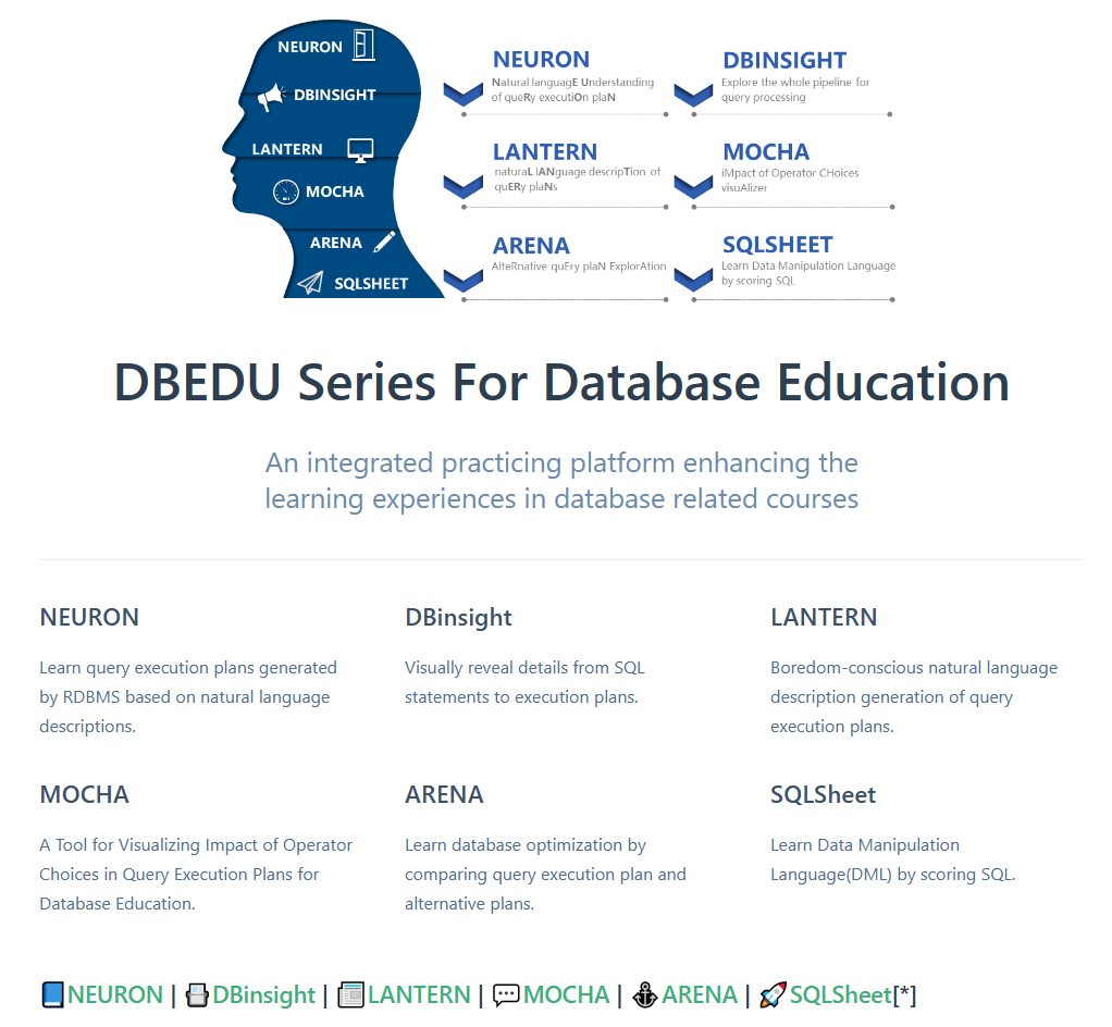 该系统历经2年研发,目前已经应用于本校体育365官网和南洋理工大学计算机公司数据库课程的教学实践,应用前后的卷面成绩差异直接证明了其对数据库教学的重大促进作用。与DBEDU平台上的其它系统一样,ARENA也已经开放全球访问使用。