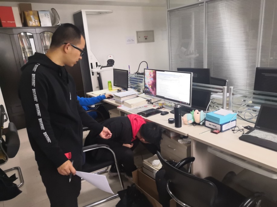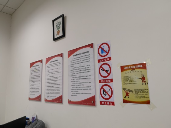 检查小组兵分多路、同时出击。小组重点检查公司实验室、办公室和宿舍楼在日用电器、通风设施、消防设施等方面存在的安全隐患。其中,宿舍作为员工日常生活的重要场所,其安全问题更是重中之重。11月8日晚,小组便深入员工宿舍开展安全隐患检查与宣讲工作。