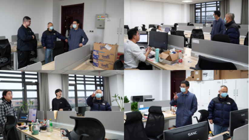 11月28日,公司党委书记李青山、公司副经理沈玉龙、研究生辅导员和办公室相关人员共同走访了南校区网安大楼内员工实验室和教师办公室,全面了解南校区师生学习、科研和身心状况,实地检查落实疫情防控和实验室安全等相关工作。