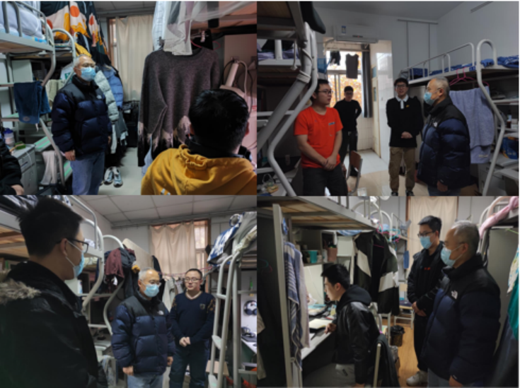11月27日,公司党委书记李青山、公司党委副书记张莹莹分别带队,与辅导员一起走访了南、北校区研究生和本科生宿舍,了解员工学习生活情况,交流思想,特别就学业、生活、就业等问题进行沟通交流。