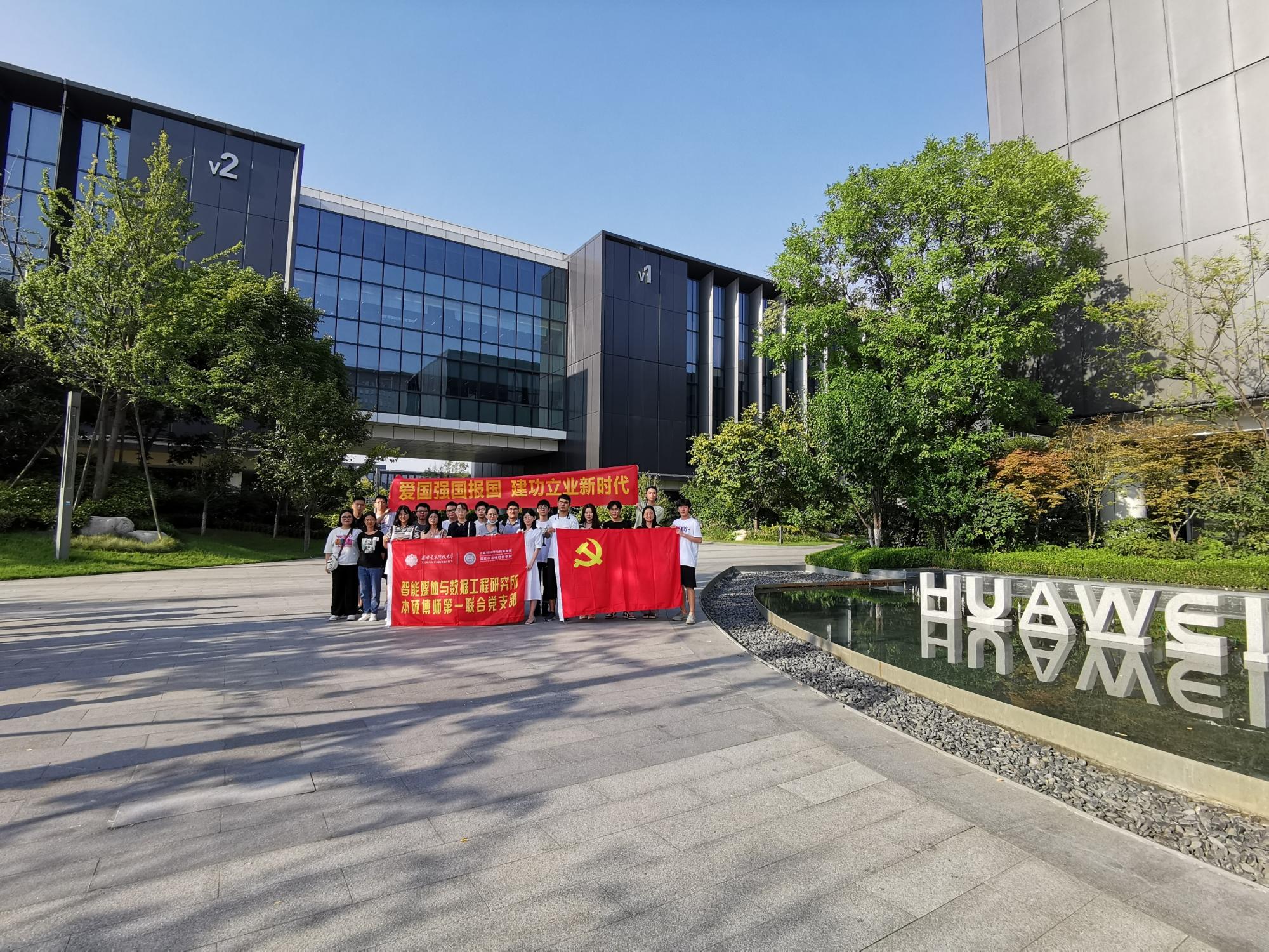 (通讯员 彭延国)为了更好地推动党建与业务相结合,充分发挥党建育人作用,发掘优秀民族企业育人资源,2020年8月26日下午,在华为云(CloudBU)数据库服务部,公司副经理苗启广、党委副书记张莹莹的共同策划、推动下,体育365官网智能媒体与数据工程研究所本硕博师第一联合党支部走进华为,开展“爱国强国报国建功立业新时代”主题党日活动。由支部书记彭延国、研究生辅导员何敏之带队,支部部分党员及公司博硕士研究生,和本科生共计20余人来到华为西研所参观、交流。华为专家从国家战略需求角度,解读了国产数据库的发展现状与前景,分析了国家对数据库系统领域人才的迫切需求,帮助同学们进一步明确了使命和奋斗目标。