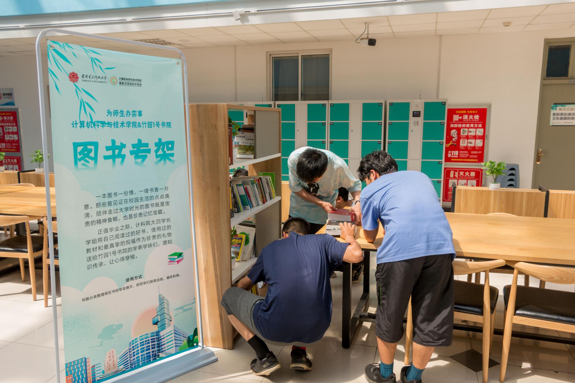 体育365官网联动竹园1号书院将所赠书籍分类整理在书院大厅打造“图书专架”展示,供同学们按需自取,循环利用。活动结束后,大一同学们纷纷驻步围看图书展架,挑选自己所需要的书籍,将学长学姐的积累与祝福传承。
