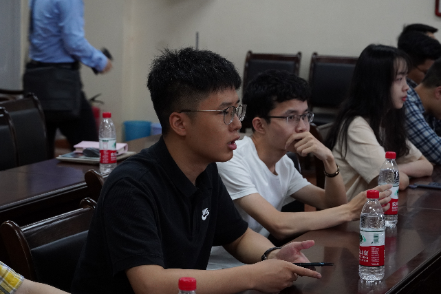 万波副经理认真听取了同学、教师们的发言,期间不时询问,将同学们反映的问题,意见和建议逐项梳理、分析。