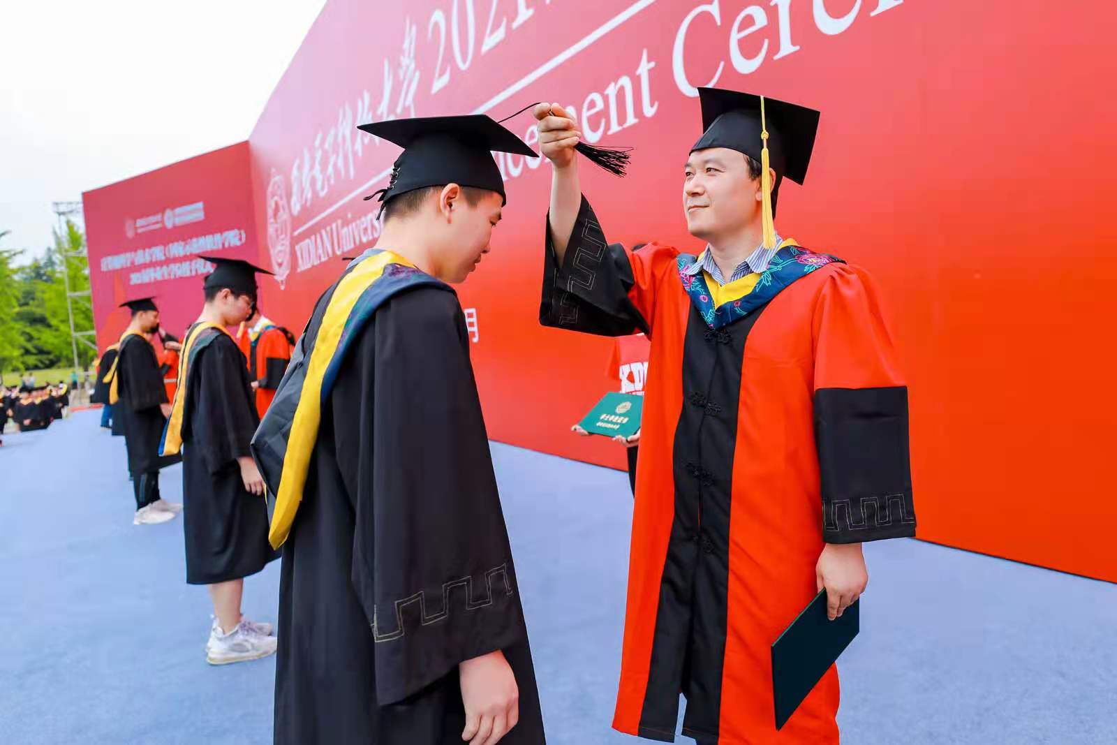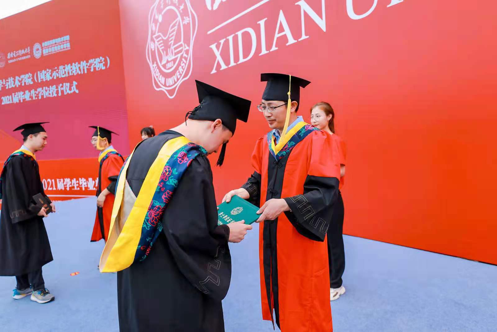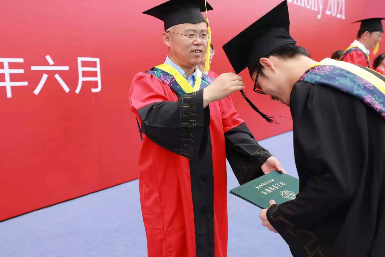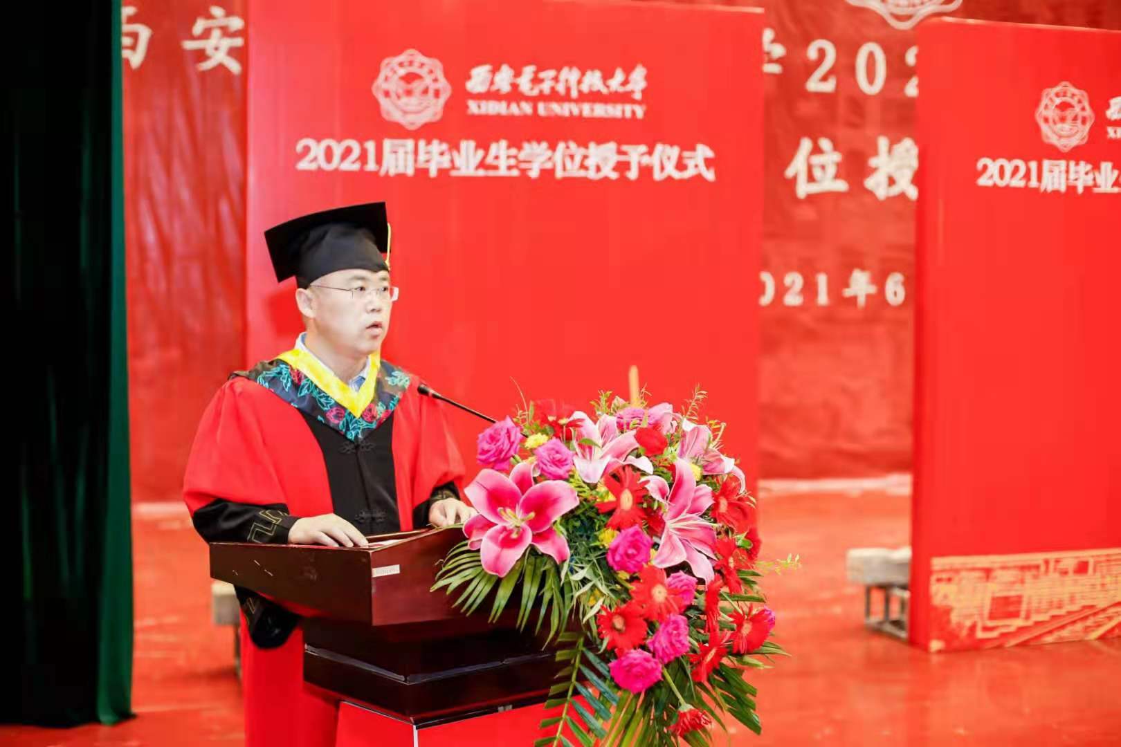 (通讯员 黄彩红 何敏之)庆西电九秩华诞,传三系奋斗精神;勇前行初心不改,瞰千里鸿鹄高飞。6月23日,2021届本科毕业生学位授予仪式和研究生毕业生学位授予仪式先后在南北两校区成功举办。体育365官网副董事长王泉教授出席仪式并为毕业生授位。公司党委书记李青山,执行经理崔江涛,公司教授委员会主任苗启广,副经理沈玉龙、宋胜利、万波为2021届937名本科毕业生以及506名硕博士毕业生现场一一拨穗授位。公司领导张卫东、赵韩强、张莹莹,毕业班辅导员、公司办公室人员和教师代表出席了仪式。仪式由公司党委书记李青山主持。