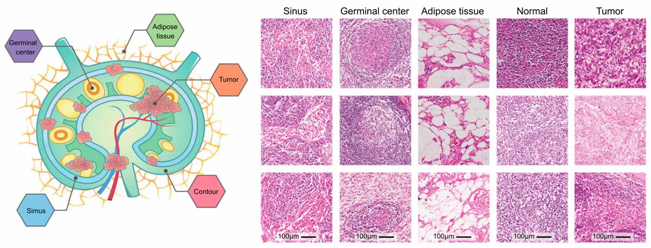 图2基于淋巴结组织结构的细粒度密集标注的示例