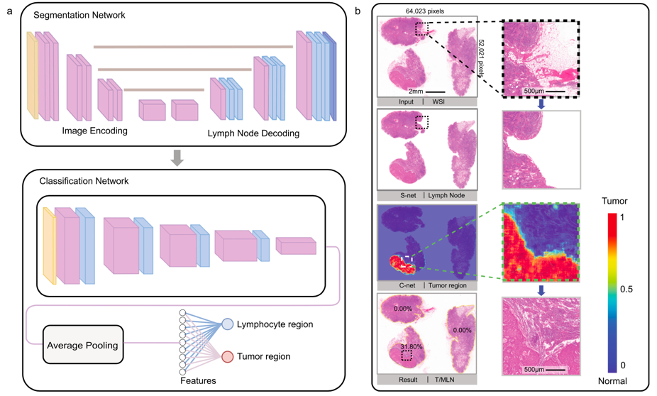 肿瘤淋巴结转移分析是基于TNM分期的癌症治疗预后估计的关键环节之一。目前,临床主要是采用目测检查淋巴结的组织切片方式,这个过程需要对每个患者检查至少十几个淋巴结,非常耗时且很容易因无法识别肿瘤淋巴结微转移而导致漏诊。此外,即使在同一N分期中,患者的预后也存在巨大差异。实际上,病理分析是肿瘤疾病诊断的“金标准”,病理分析对患者的预后分型分期至关重要。然而,由于人眼观察的局限性,病理图像体积巨大,这些潜在信息一直未被充分挖掘和量化。病理数字化扫描技术与人工智能的发展,为病理信息的充分挖掘提供了强有力的技术手段。