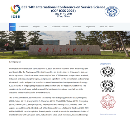 中国计算机学会第14届服务科学国际会议(CCF 14th International Conference on Service Science)将于2021年5月14日~16日在西安举行。本次会议由中国计算机学会服务计算专委会主办,体育365官网承办。本次会议也是体育365官网软件工程学科2021年举办的学术活动之一。