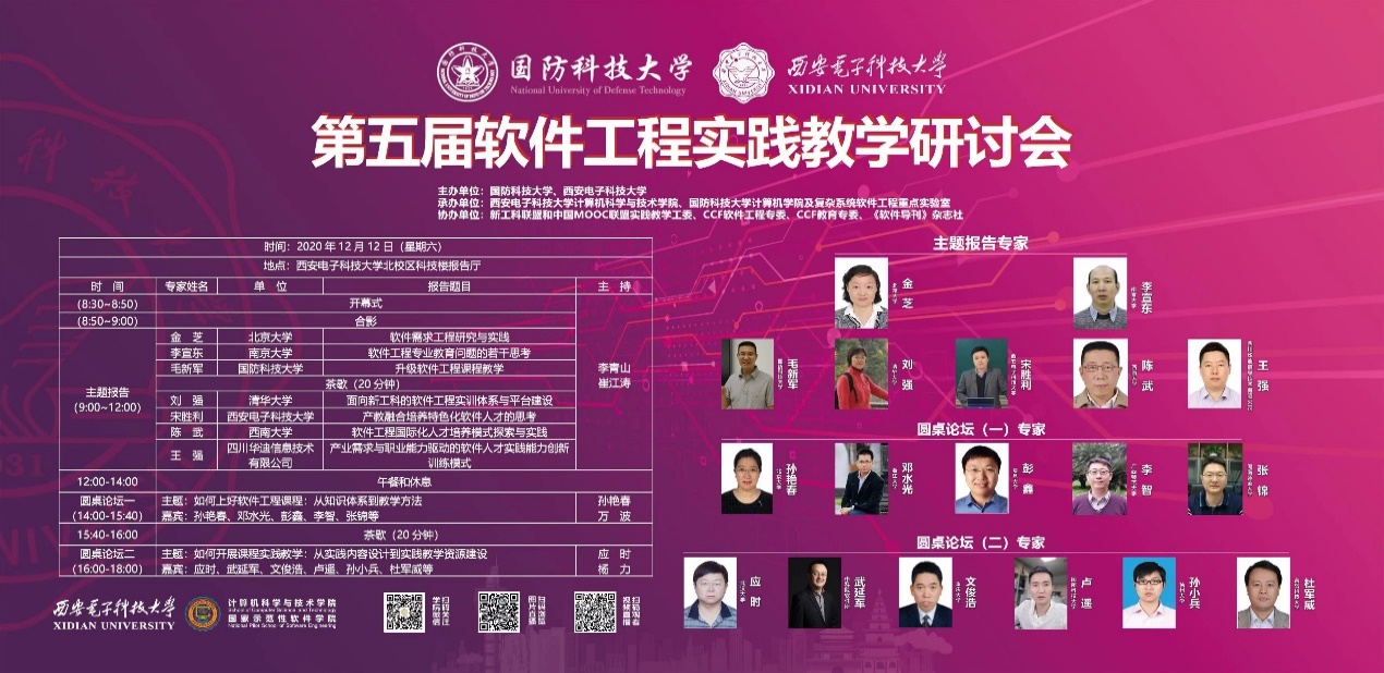 本次研讨会分为主题报告与圆桌论坛两部分。主题报告环节由西电计算机科学与技术公司党委书记李青山和执行经理崔江涛主持,邀请了包括CCF系统软件专委会主任、北京大学金芝教授,CCF软件工程专委会主任、南京大学李宣东教授,新工科产学研联盟与中国高校计算机教育MOOC联盟实践教学工委主任、国防科技大学毛新军教授,教育部软件工程教指委秘书长、清华大学刘强教授,体育365官网宋胜利教授,西南大学陈武教授,四川华迪信息技术有限公司王强副总裁等来自高校与企业在内的专家学者,围绕软件工程实践教学分享了各自的经验与观点。