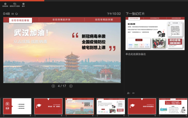 在这次班会上,辅导员以“非同寻常的寒假,非同寻常的开学,非同寻常的学期”展开,分析了当前疫情形势、带来的挑战和对大家的要求,特别为寒假期间同学们积极配合疫情防控工作,主动参与志愿服务,充分做好“延期不延学”各项准备点赞。导员老师以“最自信的中国人、最理性的西电人、最前沿的计科人、最期待的新青年”勉励大家,要求同学们坚决落实防控工作要求,调整个人状态,适应现阶段线上教学的节奏,为新学期明确目标、做好学涯规划,完成好学业任务。