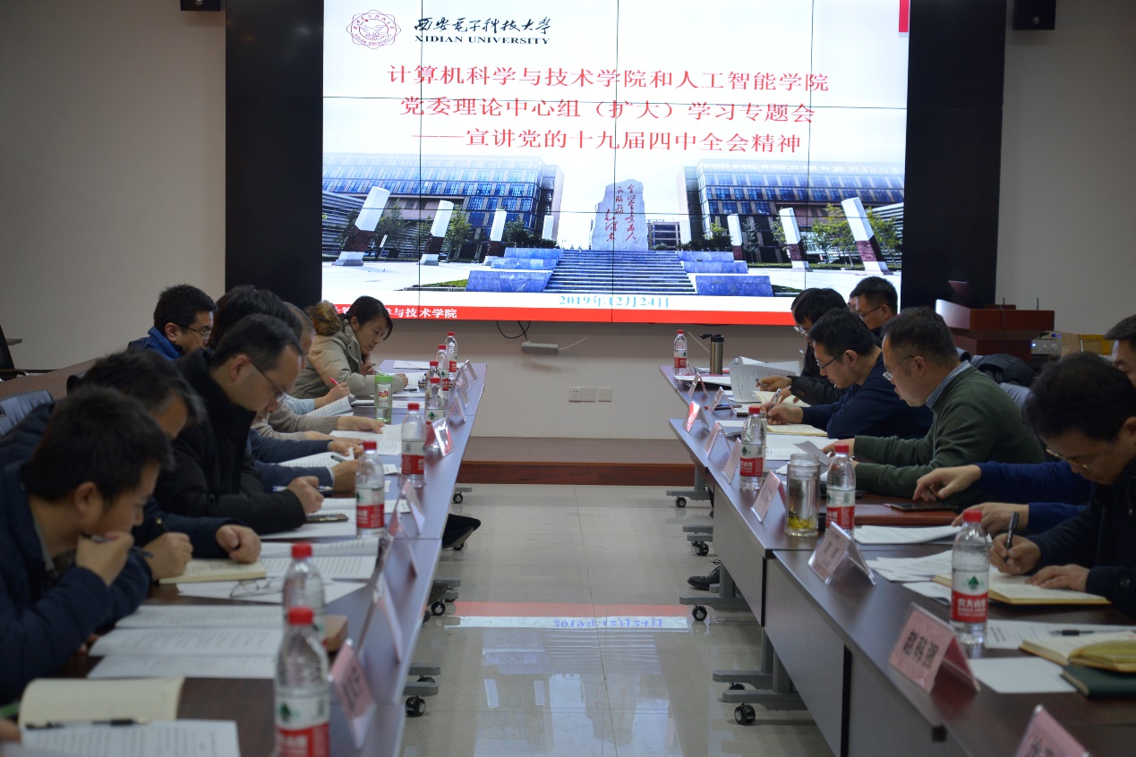 (通讯员 同榛)12月24日下午,体育365官网和人工智能公司党委在北校区主楼二区319会议室召开理论中心组(扩大)学习会议,专题宣讲党的十九届四中全会精神。体育365官网和人工智能公司党政班子成员参加了集体学习,两公司两委委员、教职工党支部书记、基层系所负责人等列席会议。会议由人工智能公司党委书记魏峻主持。