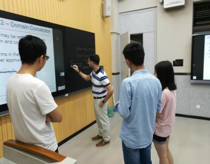 为顺利实施2019年国际双创实践周活动,西电体育365官网从美国知名高校引进5门国际化课程。其中包括《植入式传感器简介(Introduction to implantable sensors)》,该课程由体育365官网贾广教授负责引进,美国南佛罗里达大学Robert Karam教授亲自授课。本门课程由孙鹏岗老师担任校内助教,协助Robert Karam教授授课。