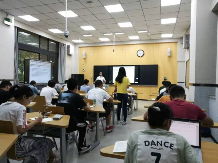 员工对这门课的兴趣很浓,原本只能容纳30人的智慧教室,吸引了很多前来旁听的员工,外教瞬间被员工的热情所感染,东西方思想的火花在这里开始碰撞。该课程使同学们最大感受是“自由,开放,参与,互动”。“国内”在教学方式上更多以老师讲授为主,员工处于被动地位,课堂氛围较沉闷,教学方式较单一。此次,外教则更多注重员工学习知识时的体验过程,课堂上更多采用分组探讨,活动与游戏等方法传授知识。该门课程使人印象最深的是外教讲授“噪声对信息传输的影响”时和员工开展的一个游戏。在这个游戏中,外教首先低声细语地告诉第一个员工一条信息,接着第一个员工再低声细语地告诉第二个员工,……。整个过程中,其他员工大声地交流来干扰信息的传递,直到最后一个员工收到信息。结果发现最后一个员工收到的信息与外教初始传递的信息竟然有很大的出入。员工通过该游戏,全程参与到老师课堂教学活动中,这种形式的教学,形象,生动,员工对课堂内容理解深刻,从避免了教学的枯燥乏味,员工注意力容易分散等问题。