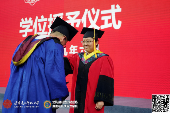 随后,学位授予仪式在欢快的音乐声中正式开始,参与学位颁授的嘉宾一一上台为2019届毕业生颁授学位。