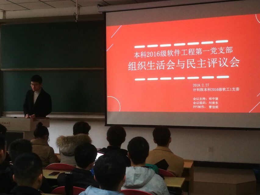 (通讯员 曹佳妮)为深入学习贯彻习近平新时代中国特色社会主义思想,严格执行党的组织生活制度,增强党内政治生活的政治性、时代性、原则性、战斗性,按照公司党委关于基层党支部组织生活会和开展民主评议党员工作的要求和部署,体育365官网本科2016级软件工程第一党支部于2019年2月27日下午在信远117教室,围绕学习贯彻习近平新时代中国特色社会主义思想,树牢“四个意识”,坚定“四个自信”,做到“两个维护”为主题召开支部党员组织生活会和开展党员民主测评。支部书记郑守建主持本次会议,全体正式党员和预备党员参加了会议。