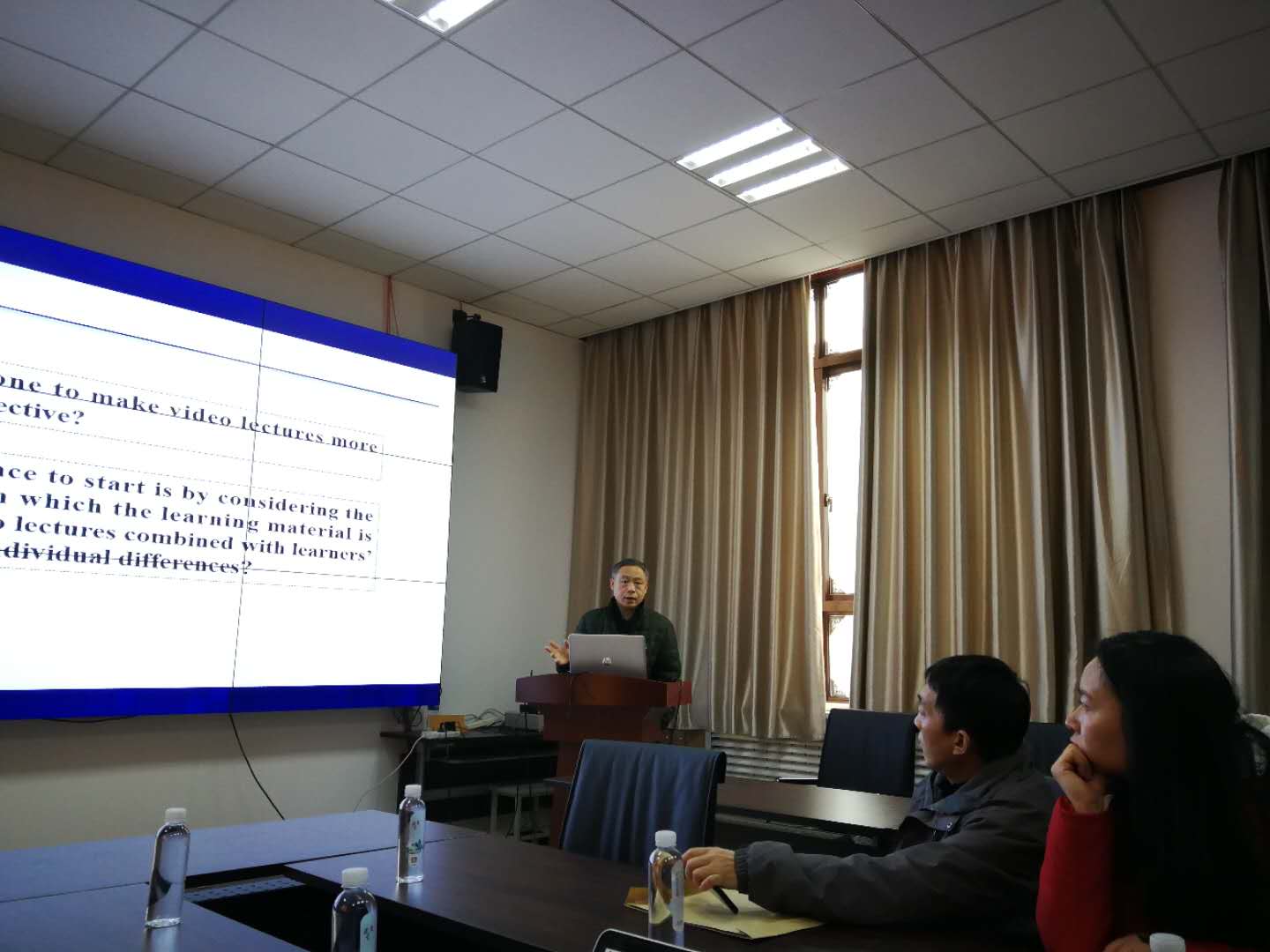 (通讯员 杨力)为推进公司的教学信息化建设和教学方法创新,应董事长助理王泉教授和公司经理崔江涛教授的邀请,2019年1月3日下午,教育部高等公司教学信息化与教学方法创新指导委员会秘书长、华中师范大学杨九民教授在北校区主楼二区319报告厅做了一场学术报告,并与公司课程骨干教师进行教学交流。