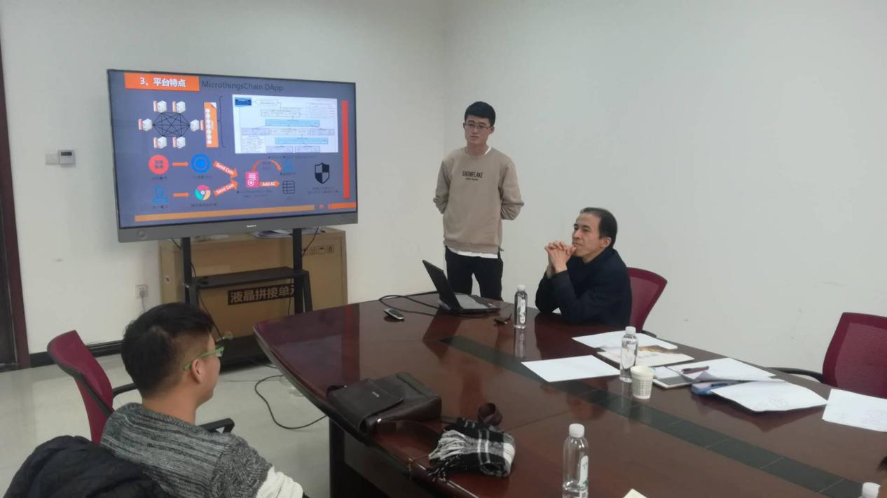 参加本次讨论的公司创业团队有:基于区块链的多与数据共享交换平台;“鲲物”大型设备共享管理平台;MicroThings:微物联平台;“煜”集中供热智能监控系统共计四个团队。这次辅导首先通过创业团队简单的路演介绍项目的内容,然后翟老师提出一些问题,再展开各项讨论。