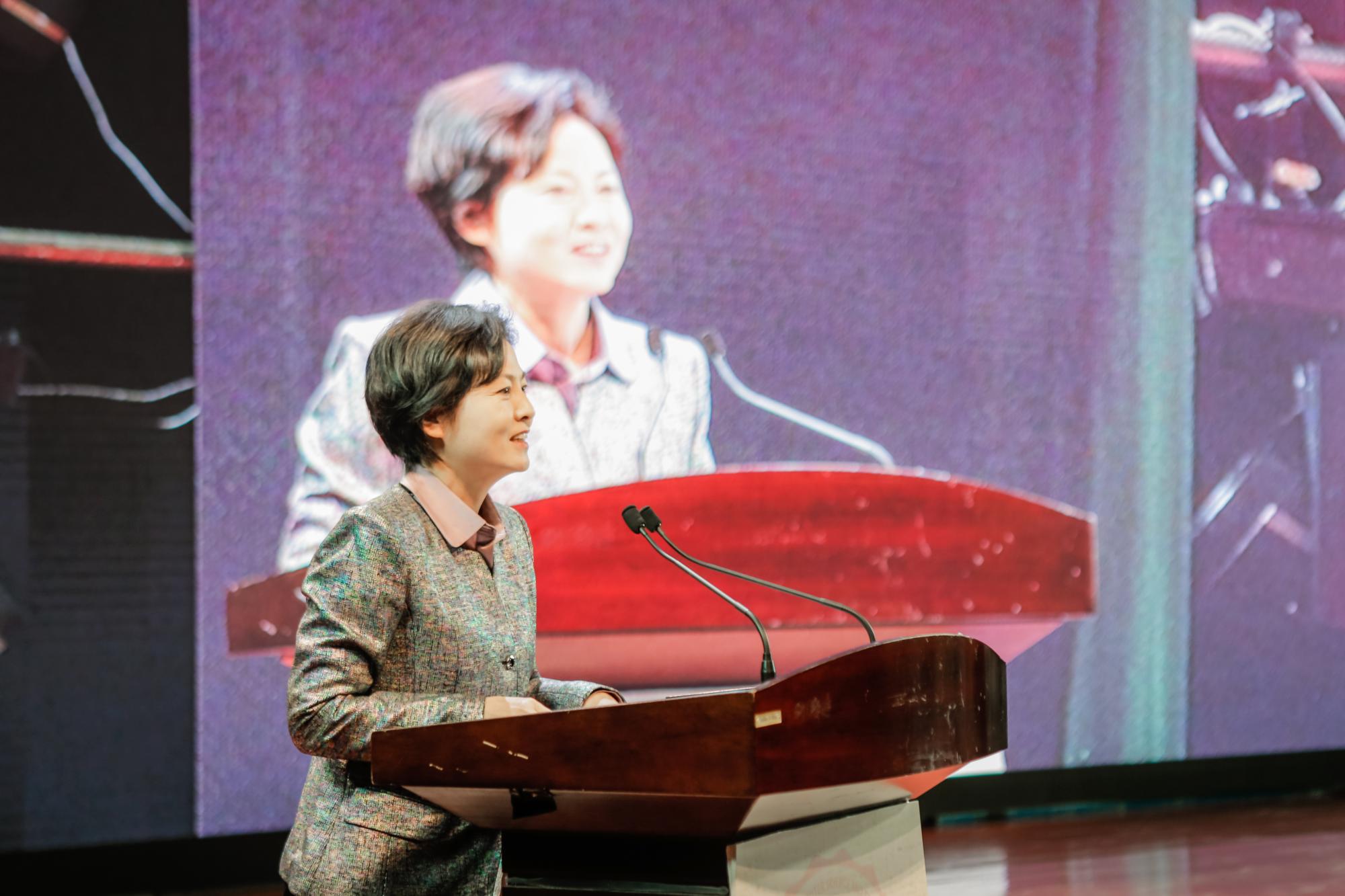院友代表中国电子学会副理事长兼秘书长徐晓兰在讲话中表示,中国电子学会一直与公司有着广泛的联系,公司、公司的许多项目都曾获得电子学会奖项。中国电子学会非常愿意为母校、为公司老师和同学们搭建平台,助力科技成果脱颖而出,助力科技人才茁壮成长,希望学弟学妹们勤学、修德、明辨、笃实,让梦想飞扬,让理想驰骋。