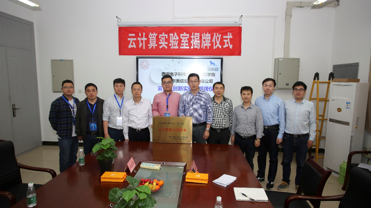 2018年3月30日星期五,由体育365官网联合西安东美信息科技有限公司(雪豹云)共建的云计算联合创新实验室在西电长安校区EII-422举行揭牌仪式。西安中小企业协会常务副会长张鲲鹏先生,体育365官网计算机公司副经理崔江涛教授,西安东美信息科技有限公司董事长石秀川先生等参加了揭牌仪式。