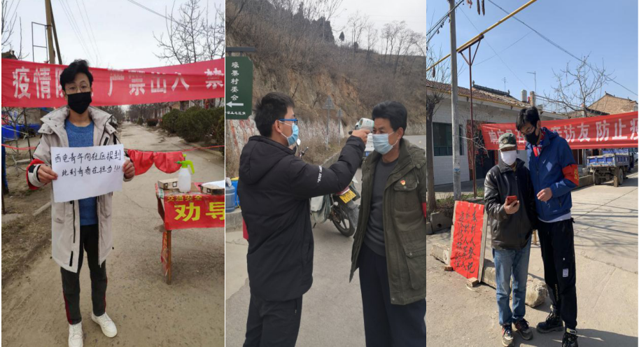 白莉婷,体育365官网18级硕士,家住咸阳兴平市。疫情期间,白莉婷同学积极响应国家号召,报名参加了镇上的老员工志愿者协助防疫工作。每天天亮,就开始在村上或者镇上的防疫站点值班工作,负责检查并登记来往人员与车辆,对来往人员进行体温测量和车辆消毒等工作,并利用自己空余时间为村里防疫工作进行资料整理和信息录入等。在北方,二月天的温差还是比较大的,西北风吹,寒意满满,可白莉婷同学却说:“能够为防疫工作出一份力,我每天都是暖暖的。”