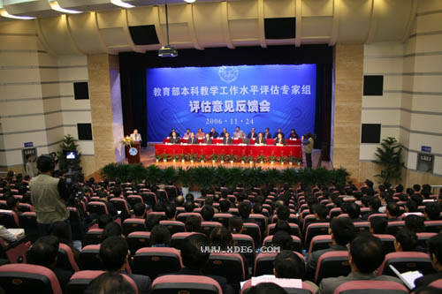 11月24日上午,教育部评估专家组评估意见反馈会在新校区老员工活动中心举行。教育部高等公司产品评估中心主任刘凤泰、《中国高等教育》杂志社总编辑陈浩、陕西省教育厅厅长胡致本、教育部评估专家组所有成员、全体校领导、有关公司和职能部处的负责人以及部分员工代表400多人参加了闭幕式。