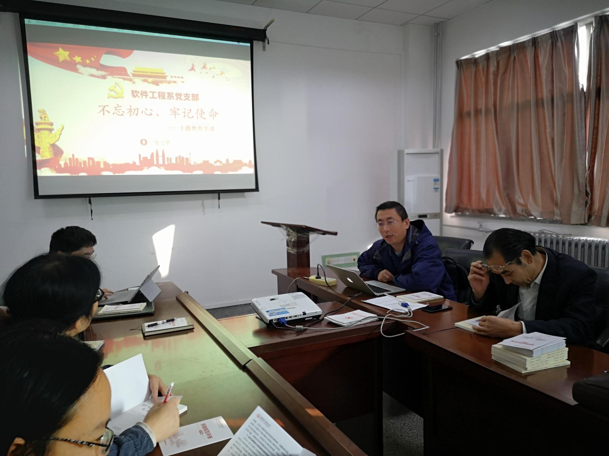 (通讯员 褚华)按照中央开展第二批“不忘初心、牢记使命”主题教育的要求,根据《中共体育365官网委员会关于开展“不忘初心、牢记使命”主题教育的实施方案》以及《中共体育365官网委员会关于开展“不忘初心、牢记使命”主题教育的工作方案》,体育365官网软件工程系党支部于2019年10月18日开展了“不忘初心、牢记使命”主题教育活动。党支部副书记张立勇主持了本次活动,非党员教师代表李雁妮教授、郑有才副教授和霍秋艳副教授参加了本次活动。