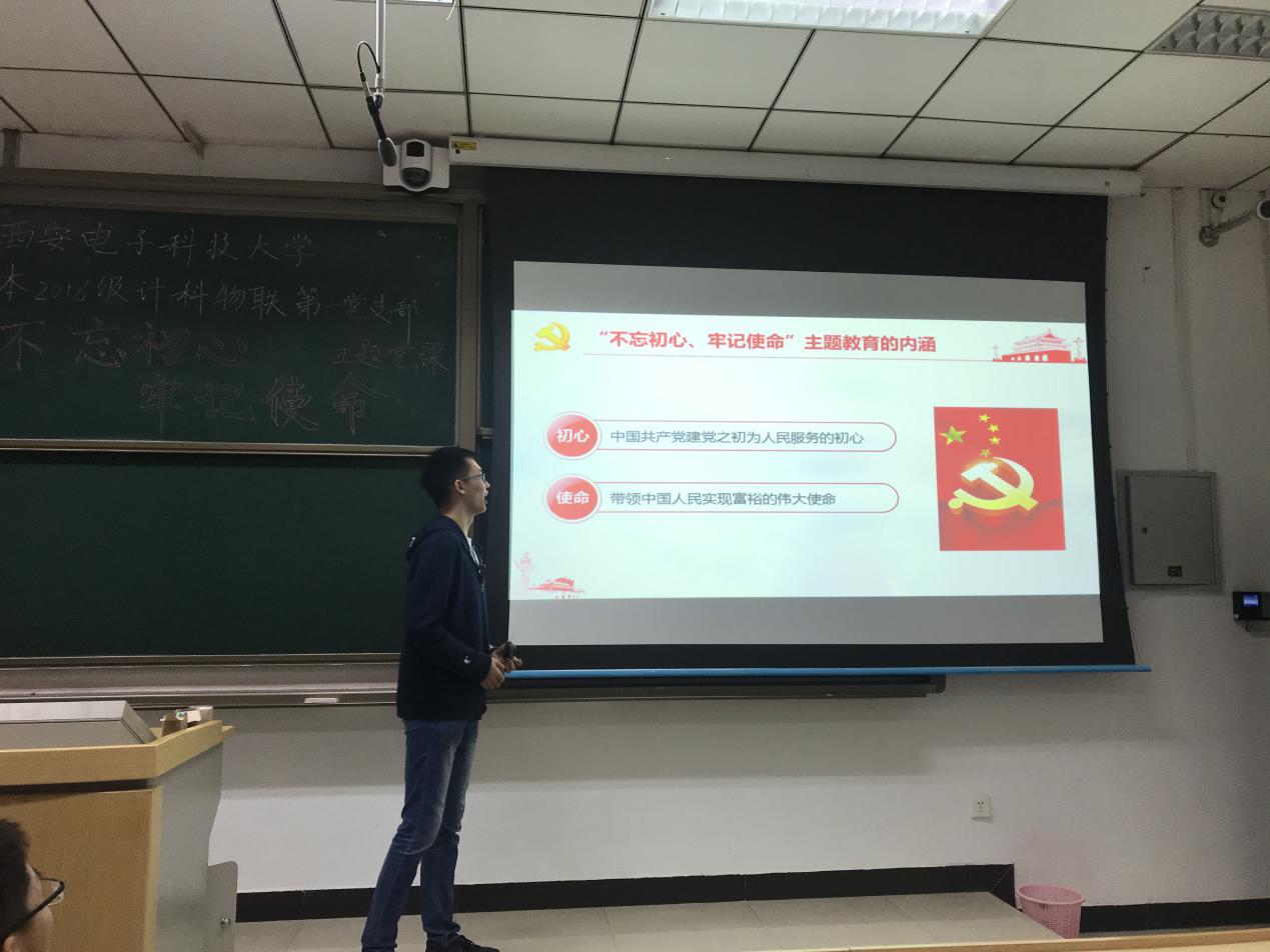在讲到第三部分,“不忘初心、牢记使命”主题教育的意义的时候,有同学提问:“这个主题教育对我们来说,实际作用是什么呢?”针对这个问题,张俊华没有做直接回答,而是建议大家展开相关讨论。最终,大家普遍认为,主题教育往大了说可以推动全党更加自觉地为实现新时代党的历史使命不懈奋斗,而往小了说可以保持我们党支部的活力、警醒同学们铭记历史,为实现伟大复兴的中国梦燃起心中奋进的火焰。同学们深受鼓舞,深感这次主题教育的重要性。