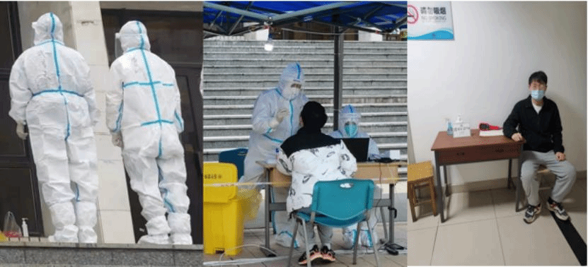 党支部的入党积极分子也积极响应,为身边同学服务。卢凤芩负责在宿舍大厅检查进出宿舍楼的同学的出入证,并做好沟通和劝导。“我坚信没有永被禁锢的城,只有矢志不渝的爱。封楼确实给我们的生活带来了一些不便,我在值班期间尽可能保持亲切温暖,希望能缓解个别同学的焦躁情绪。我的工作比起一线奋斗的党员战士们颇显微薄,希望他们一切安好,我也会继续做好志愿工作,以实际行动践行入党信念。”李腾作为小组组长参与了公司核酸检测的志愿工作,协调志愿者同学们分工明确,保证队伍的有序性,最大程度地提高核酸检测工作的效率。“我工作的时间是傍晚,仅仅两个小时便感到很难承受这样的低温,可想而知医护工作者坚持一整天的辛苦,我真的很钦佩和感谢他们的无私奉献。相信有他们这样的人在,疫情一定会很快结束。”