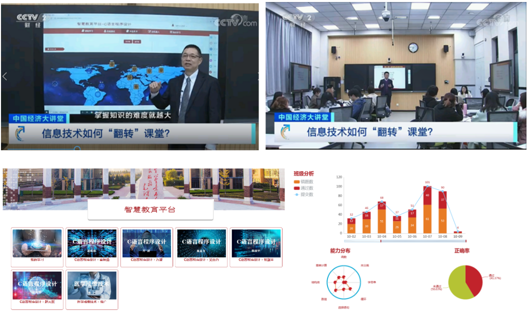 智慧教学平台是苗启广、宋建锋课题组根据国家、教育部 “人工智能+教育”的战略部署,将科研成果向教学转化的成功案例,旨在从体育365官网本科《C语言程序设计》课程的教学任务出发,自主研发“双师型”C语言程序设计智能教育平台,包括在线考试系统、知识点粒度的MOOC开放课程、基于常用问题的教学社区AI机器人和智能教育大数据平台。
