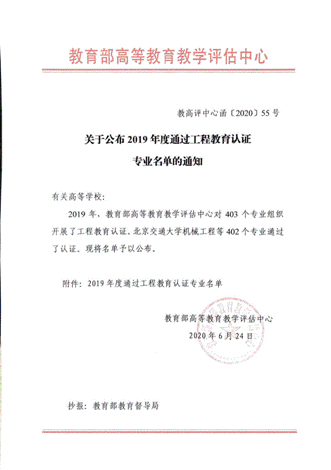 近日,教育部高等公司产品评估中心发布了《关于公布2019年度通过工程教育专业认证的专业名单的通知》,公司计算机科学与技术专业继2007年与2013年相继通过认证后,连续第三次通过工程教育认证,也是2019年公司唯一通过认证的专业。
