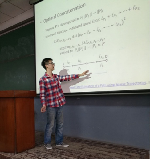 2017年9月,阮思捷回到公司继续完成博士阶段的课程学习,导师交给他除上课和科研以外另一重要任务——课程助教。那时,导师在体育365官网为研究生开设了一门课程——《城市计算》,阮思捷则要辅助导师完成课程补充内容讲解和作业答疑等任务。这对他来说并不是一件容易的事,一方面,他缺乏课程讲解的经验;另一方面,由于内容前沿,很多知识点他也没有充分掌握。为了能够进行内容充实、通俗易懂、不出纰漏的讲解,阮思捷认真学习、细致备课、请教导师,成为了一名称职的课程助教。这次助教经历,更是让他收获颇丰,不仅进一步助他夯实科研基础,更无形中提高了他进行学术报告的水平。