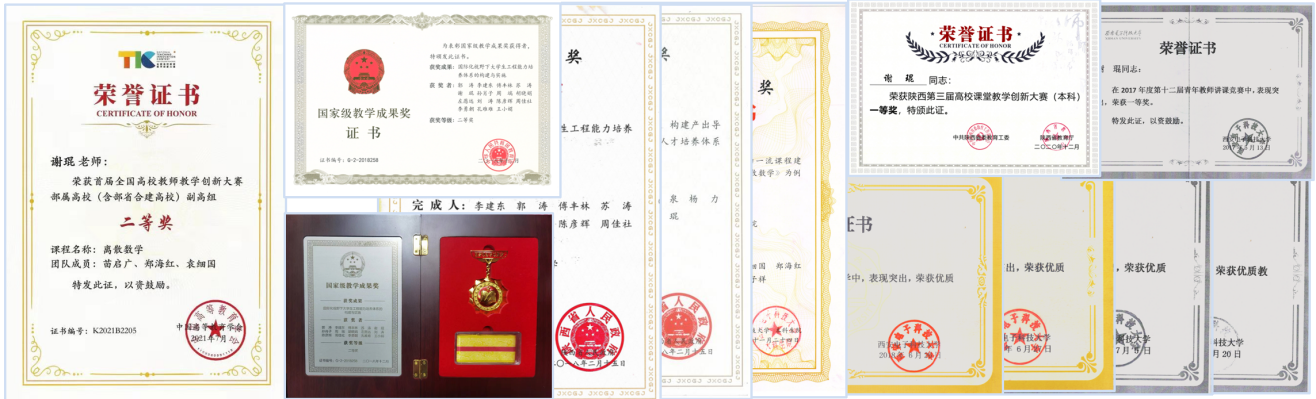 矢志创新,推动教改。在长期的一线教学工作中,谢琨同志积累了大量的经验,进行了深入的人才培养和本科教学工作的探索与实践。近五年主持教育部、省校级教改项目12项,其中省级重点项目4项,作为主要完成人参与教学改革项目8项;在CSSCI、中文核心等期刊发表教改论文9篇。作为课程负责人获首批陕西省线下一流课程1门,2021年被推荐国家级线下一流课程评选(在评)。经过长期的探索实践,教学改革成绩显著:获首届全国高校教师教学创新大赛二等奖(西电唯一),国家级教学成果奖二等奖,陕西省教学成果特等奖、一等奖、二等奖各1项,陕西省高校课堂教学创新大赛一等奖,第三届全国“互联网+”老员工创新创业大赛优秀导师奖和首届全国“互联网+”老员工创新创业大赛陕西赛区优秀导师奖,陕西省高校教师微课教学比赛三等奖,体育365官网第十二届讲课竞赛一等奖,体育365官网优秀教学质量奖一等奖等校级以上教学奖项近30项。