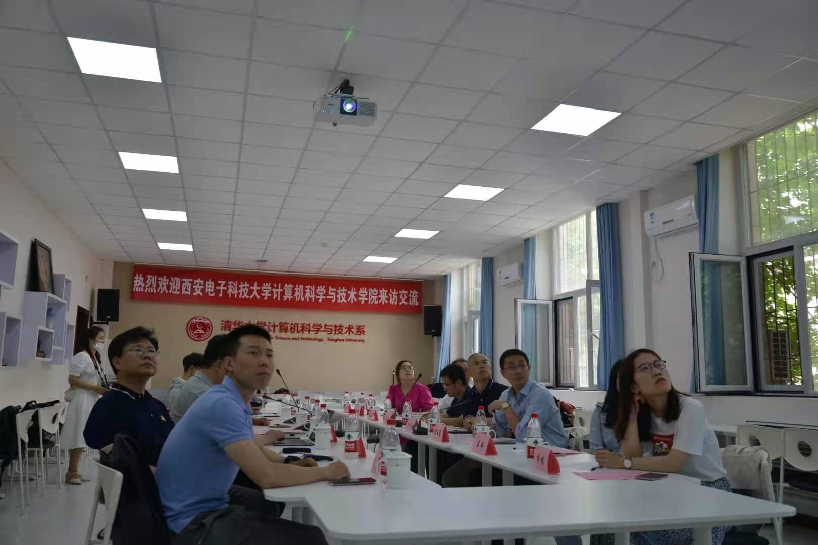 清华大学计算机系党委书记刘奕群代表清华大学计算机系对西电体育365官网一行的到来表示欢迎。他介绍了清华大学计算机科学与技术系党委基本情况,重点分享了落实基层党建工作“五个到位”的具体举措,从专题学习研讨、领雁之声系列理论学习、参观实践、师生共建主题党日团日活动等方面说明了党史学习教育工作开展情况。