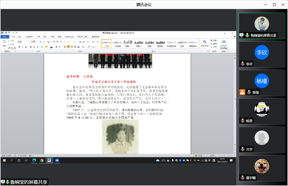 (通讯员 杨瑾 李欣)今年是建党100周年,也是体育365官网建校90周年,为重温党的光辉历程,以良好的青春风貌向党和公司献礼,10月31日,体育365官网大数据与视觉智能研究所本硕博师第一联合支部召开了“学党史,迎校庆”党员故事分享活动,会议由支部书记刘向增主持。