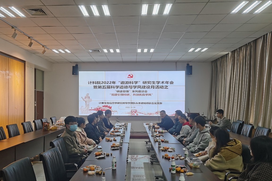 (通讯员 张明婕)11月18日下午,体育365官网计算生物信息学研究所本硕博师联合党支部在主楼Ⅱ区319会议室,举办了2022年“遨游科学”研究生学术年会暨第五届“科学道德与学风建设月”活动之“研途引领”座谈会,座谈会以“党建引领科研,共创优良学风”为主题,旨在通过开展科研经验、学术成长等方面的交流分享,促进师生传帮带,共谈学术规范,树立科研风范,弘扬优良学风。