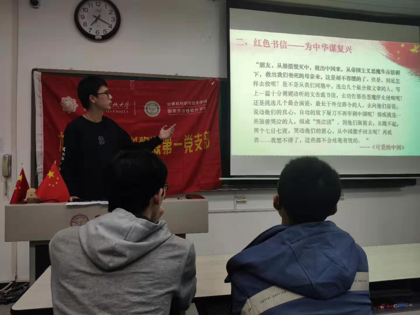 (通讯员 翟恋 徐聪)为感受共产党创业的筚路蓝缕,品鉴从风雨飘摇时代到现在的社会变迁,2019年11月3日晚,​体育365官网本科2016级计科物联第一党支部在C楼324教室开展了“红色文化读物交流”主题党日活动,2016级辅导员郭禹宏老师及20余名支部成员参加了活动。