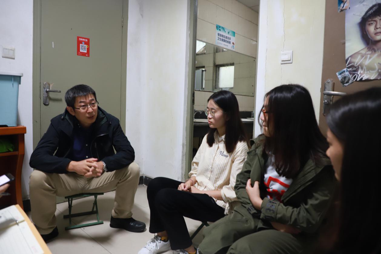 下午17:30,崔江涛来到1#II区201宿舍,与同学们面对面交流。他详细询问了同学们的学习生活情况,当得知宿舍中有两位同学通过研究生推免综合测评之后,崔江涛勉励同学要继续保持学习状态,以一名研究生的身份来要求自己。同时,他鼓励准备考研的同学要认真复习,也要学会释放压力,以积极的心态备考。