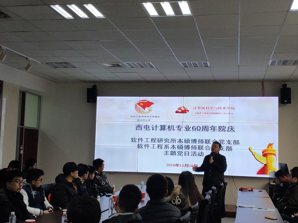 (通讯员:赵海洋 田文生)12月20日,值此西电计算机建专业60周年之际,软件工程研究所本硕博师联合党支部和软件工程系本硕博师联合党支部,联合开展“西电计算机专业60周年院庆”主题党日活动。本次活动主要回顾了体育365官网建专业60周年以及软件工程发展50年历程,解读了国家软件发展战略、国家软件人才需求情况和西电软件工程专业的发展状况;王璐博士与师弟师妹们就大家关心的奖助体系和培养体系进行了介绍。会议也积极讨论了关于支部建设和党组织活动开展的重要事项。会议由软件工程系本硕博师联合党支部书记李瑞老师主持。