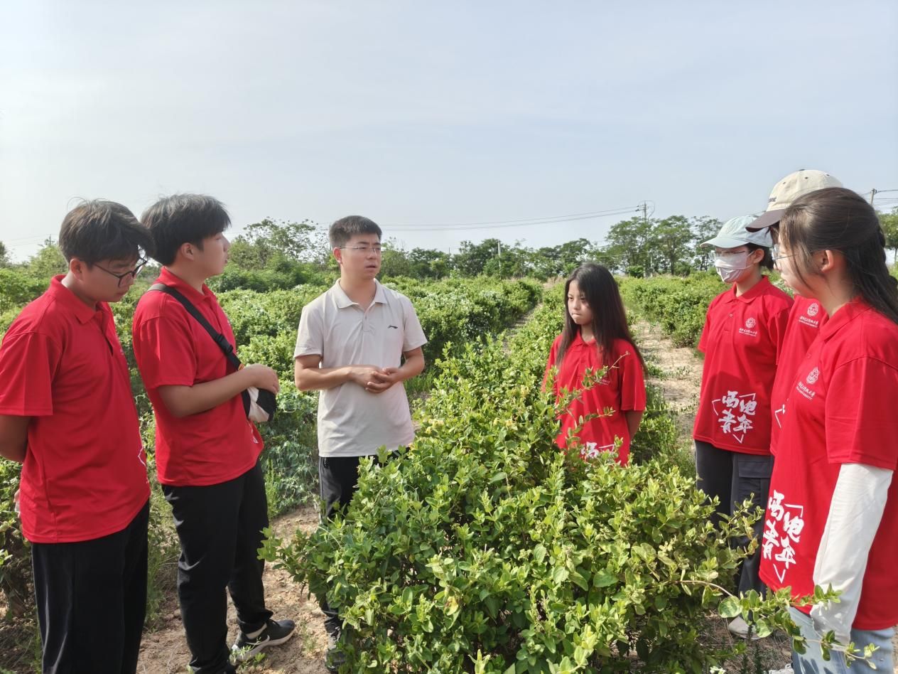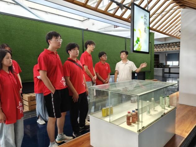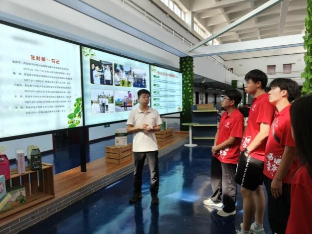 在农产展销研发服务中心内,李攀结合产业发展历程,从推动金银花从最初的种植到新品种的研发,再到现在的深加工,不断让金银花变为当地农户的“幸福花”、“致富花”的过程,详细地向实践队员讲述了在公司的大力帮扶下,五任驻村第一书记与村干部、村民共同谋划、接续奋斗的故事,让同学们通过真实案例,了解从脱贫攻坚战略到乡村振兴战略的具体发展过程,深刻感受国家政策如何惠及民生。
