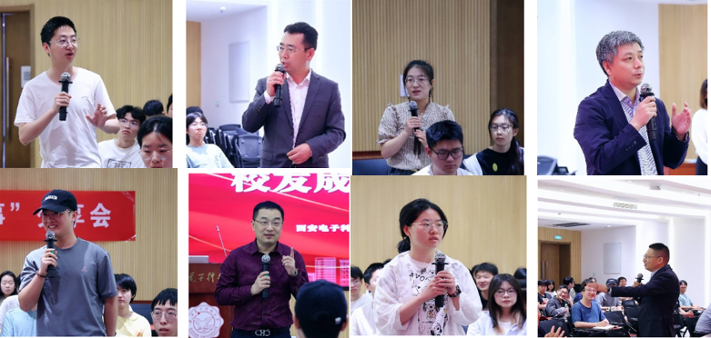 温绍杰员工通过“真假员工”的案例,分享担任深圳员工会秘书长期间的故事,强调员工资源的重要性,鼓励大家毕业后要积极融入当地员工会,加强员工间的沟通交流和资源共享,积极投身服务母校的具体行动,不断擦亮西电名片,做出“西电贡献”。周方通过讲述其从“技术岗”转“管理岗”的心路历程,勉励学弟学妹要将所学知识与业务相结合,学会与人沟通,不断拓展可迁移的学习能力。梁祥胜员工回忆90年代在西电上学时的场景,通过写信联系好友无意养成的良好文字功底让他受用终生;针对毕业后的发展,他辩证地分析了成家与立业之间的关系,希望学弟学妹保持终身学习的习惯,积极应对行业的需求和变化。李亚洲员工回顾曾经在华为的工作历练以及后来的创业故事,建议学弟学妹:一是做事要有破釜沉舟的“勇气”,要勇于担当;二是要学会“沟通”,多沟通多交流多汇报;三是要学会“抗压”,愈是在攻坚克难的压力期,愈要沉下心积极调整化解压力,稳中求进。蔡震员工通过分享自己的创业故事来解读“立”、“练”、“悟”三个人生关键字,勉励同学们要结合自身实际树立短期目标和长远目标,通过不断主动尝试、多思多悟,锤炼自己的显性知识和隐性技能。