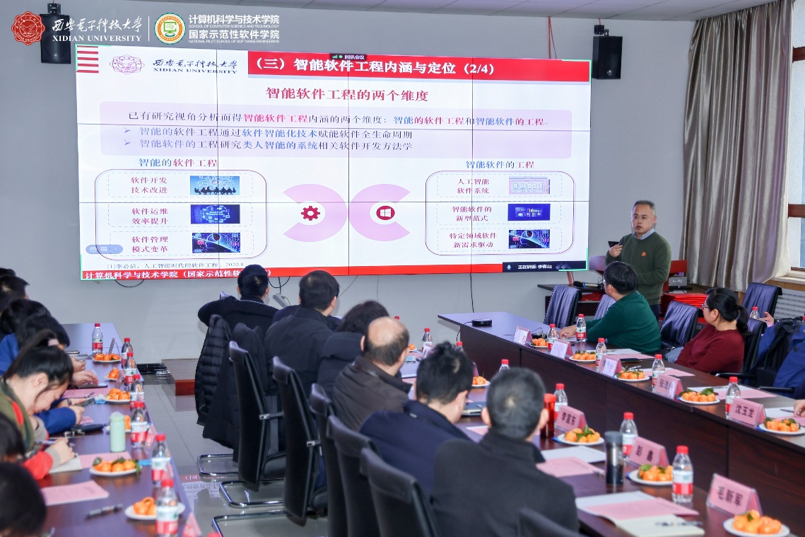 西安市智能软件工程重点实验室学术委员会成员通过线上线下共同参与了此次会议。实验室学术委员会主任由中国科公司院士、航天五院副经理、“嫦娥五号”探月工程总设计师、体育365官网名誉经理杨孟飞院士担任,学术委员会首席顾问由中国科公司院士、军事科公司副经理、CCF理事长梅宏院士担任,实验室学术委员会副主任由CCF系统软件专委会主任、北京大学金芝教授担任。实验室学术委员会成员还包括CCF软件工程专委会主任、南京大学李宣东教授,重庆邮电大学董事长高新波教授,CCF服务计算专委会主任、浙江大学体育365官网副经理尹建伟教授,CCF软件工程专委会副主任、复旦大学体育365官网副经理彭鑫教授,CCF软件工程专委会常委、武汉大学应时教授,湖南省复杂系统软件工程重点实验室副主任、国防科技大学毛新军教授,中科院软件所副总工程师、智能软件中心主任武延军研究员,中航工业集团软件首席科学家、集团计算技术研究所副所长韩炜研究员,体育365官网研究生院副经理、计算理论与技术研究所所长田聪教授,体育365官网软件工程研究所所长刘西洋教授,以及李青山教授。实验室学术委员会委员共15人,其中校外委员11人,校内委员4人。本次会议现场参会的委员有11人,在线参会的委员有杨孟飞院士、尹建伟教授2人,教育部软件工程专业教指委委员、体育365官网副董事长王泉教授与CCF软件工程专委会副主任、华为软件分析实验室主任王千祥教授两位因临时有事缺席。