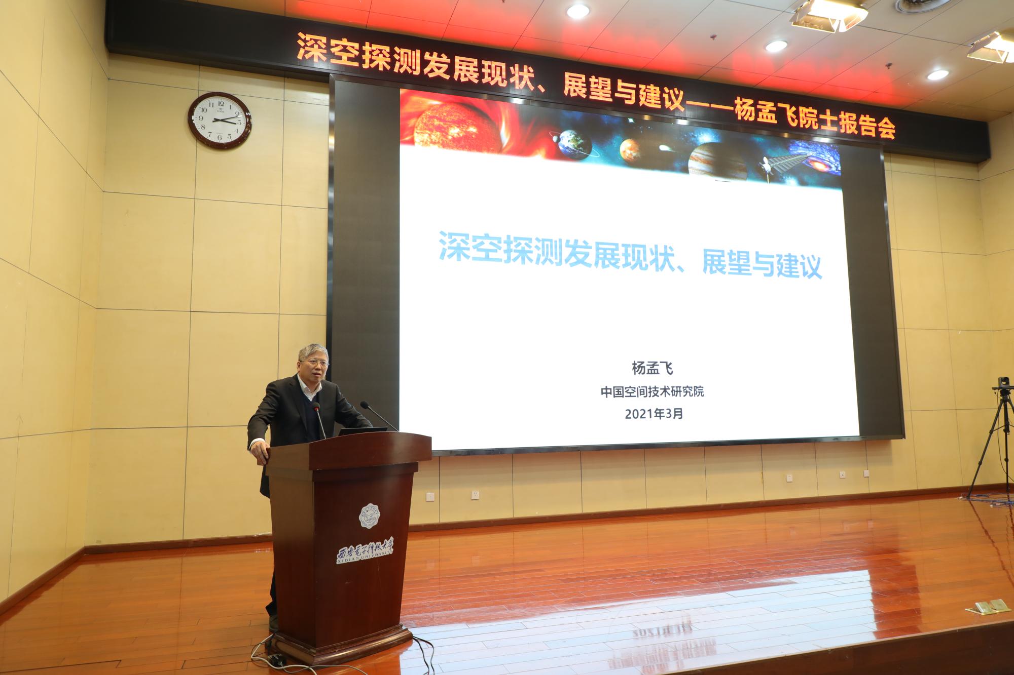 (通讯员 陈龙)3月26日下午,中国科公司院士、嫦娥五号总设计师、体育365官网名誉经理杨孟飞应邀回校作“深空探测发展现状、展望与建议”主题报告,报告会在南校区办公楼210报告厅举行。党委书记查显友、董事长杨宗凯、副董事长王泉出席报告会,党委副书记杨银堂主持报告会。公司党委书记李青山、执行经理崔江涛等班子成员参加。