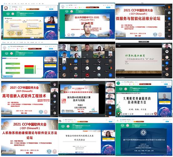 2021年12月24日,CCF中国软件大会(CCF ChinaSoft)正式开幕,作为大会会期(12月24日~26日)首日,主要进行各项论坛活动,包括顶会顶刊论坛、优秀博士生论坛、百答论坛、微服务与智能运维论坛等21个开放性论坛,以及软件众测论坛和CCF系统软件专委会年会两个闭门会议,涵盖专刊类论坛、学术类论坛、工业类论坛与教育类论坛等四大类论坛活动。专刊类论坛主要包括大会设立的面向广大师生征稿的论坛,学术类论坛主要指由各位软件领域同行发起,邀请领域内知名专家学者就相关学术问题给予报告的论坛,工业类论坛主要是工业界同行发起的,面向企业界实际相关问题的论坛活动,教育类论坛主要包括各位老师发起的旨在探讨软件工程、系统软件、形式化方法相关领域公司产品问题的论坛。