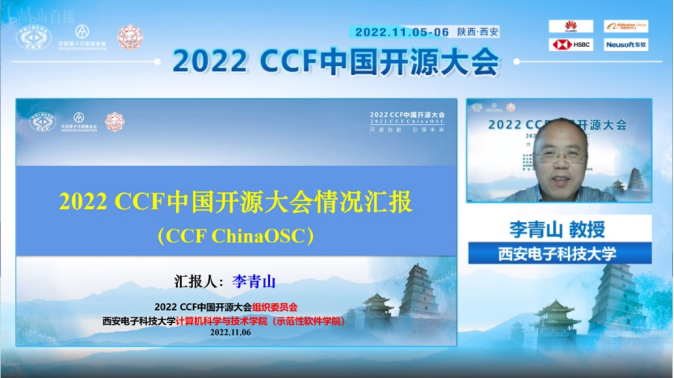 大会程序委员会与组织委员会联合主席、体育365官网软件工程学科负责人、陕西省智能软件工程创新团队负责人、西安市智能软件工程重点实验室主任李青山代表大会组委会向与会代表汇报了大会情况。李青山主要从大会基本情况与大会筹办工作两个方面对大会进行了总结,归纳了会议体系与会议内容,指出本届大会的论坛数量、注册人数与合作媒体数量等均超过预期。其中论坛数量达到24个,注册人数达到180人,合作媒体数量超过10家。11月5日各平台累计观看人数超过18万人,11月6日累计观看人数超过16万人,两天会期累计观看人数超过34万人,单个论坛平均访问量超过1万人次,最大访问量超过2.1万人,有利的扩大了大会影响,有效的传播了开源理念。进一步,李青山梳理了大会筹办的脉络,表示开源发展委员会与承办团队一同组成了大会组委会,持续密切协同,先后确定了支持单位与四家赞助商,构建了完善的会议联办体系。组委会持续通过多家单位的多种渠道对大会进行宣传,会议通知等的阅读量累计超过3万人次。面对疫情等因素的影响,组委会全程关注、及时调整、稳步推进,全力保障会议质量。最后,李青山感谢各位专家学者与师生同行对本次大会的关注和参与,也感谢各参与单位对于大会的支持。